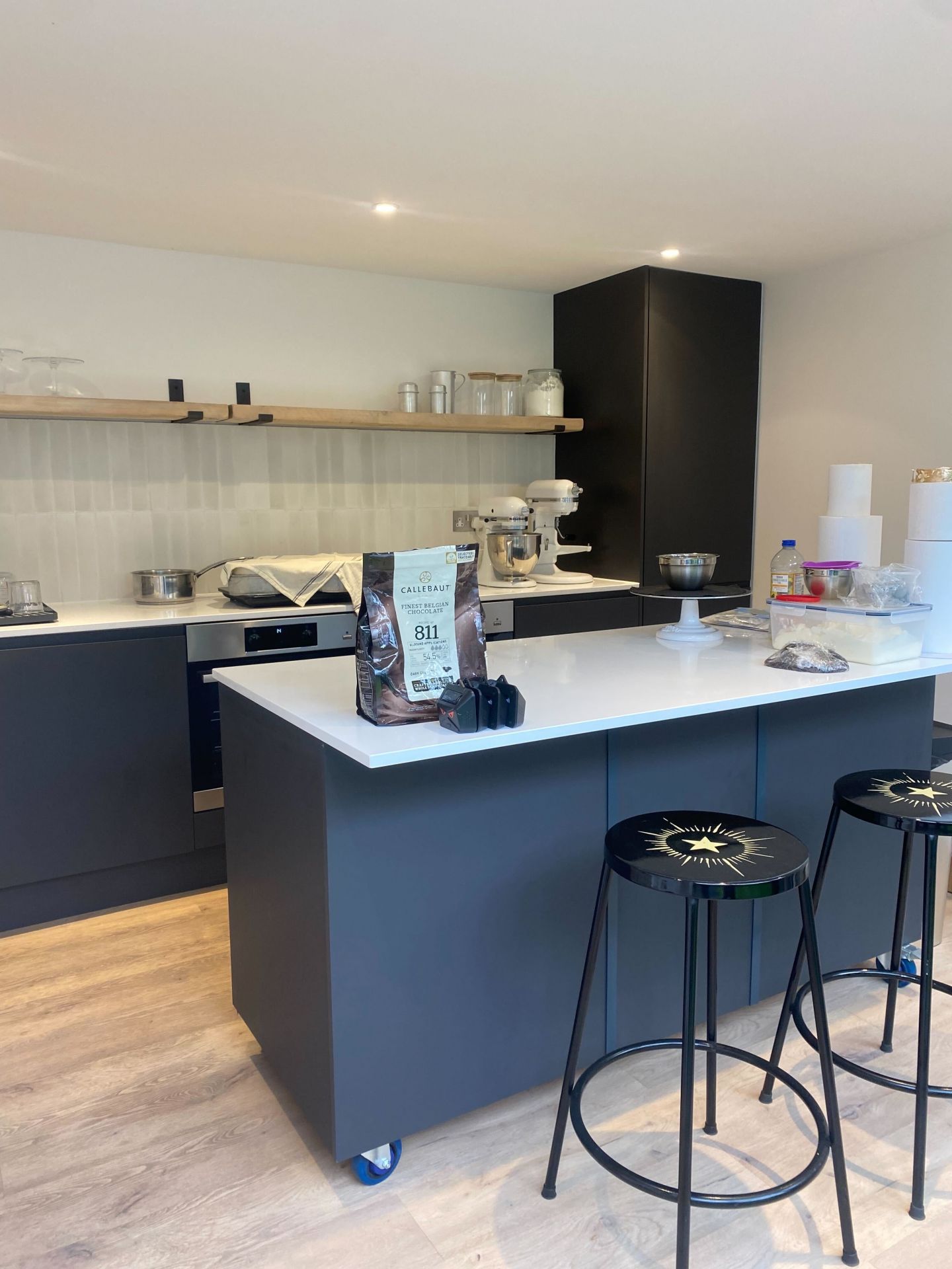 - A cake-making kitchen with hygienic finishes and plenty of prep space